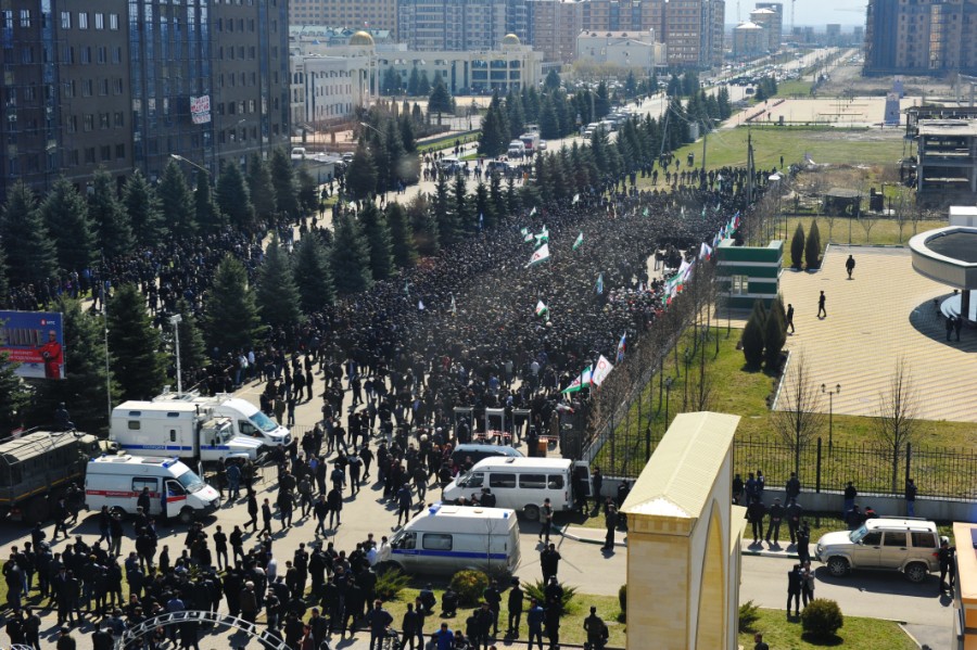 Митинг против утверждения проекта закона «О референдуме Республики Ингушетия» в Магасе, 26 мартаФото: Саид Царнаев/РИА Новости Магомед Муцольгов