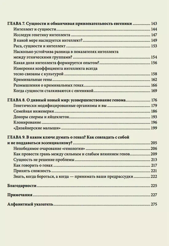 Кажется странным обсуждать тему ДНК в русле мифов и предрассудков. Однако в книге Хэйне показано, как мода на генетику среди широкой публики способствует становлению новой мифологии и как, к сожалению, в мифологизации принимают участие отцы-основатели исследований ДНК, такие как Фрэнсис Крик и Джеймс Уотсон. Хэйне вскрывает психологическую подоснову популярных представлений о генах — привычку мыслить в категориях сущностей: помидор наделен «помидорностью», кошка — «кошачестью», преступник — «преступностью» и т. д. В сознании общественности гены стали современным эквивалентом платоновских идей, раз и навсегда задающих принадлежность к той или иной категории. Поэтому эксперименты с генами воспринимаются как покушение на устройство мира. С этой точки зрения автор анализирует страхи перед ГМО и редактированием генома.