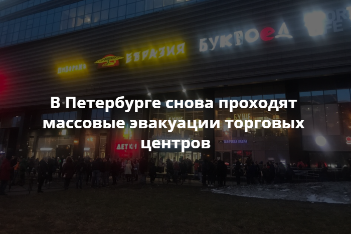По словам очевидцев, людей выводят из «Континента» у станции метро «Звездная», из «Континента» на Байконурской улице и «Континента» на проспекте Стачек, а также из торговых центров «Атмосфера» и Международный».