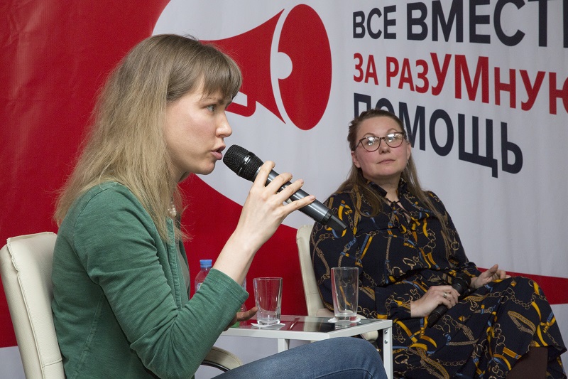 Баронова: «Никто не любит [приводить] личный опыт, но у меня он посвящен как раз такой истории. В нашей семье два года назад возник особый ребенок. К тому времени я имела опыт сбора больших сумм в области правозащиты, я была высокосоциализированным человеком, за моей спиной были люди с большим капиталом. У меня было много друзей, в том числе Митя Алешковский, с которым мы делали [сбор гуманитарной помощи в] Крымск в 2012 году. Много людей, которые, казалось бы, могли мне помочь и рассказать, как решить мою проблему. Но я оказалась в ситуации, когда с каждым днем у меня исчезала надежда. Дело не в том, что это был отказ за отказом, а в том, что каждый фонд занимался чем-то своим в конкретный момент. Но человек — существо эгоистичное и уверен, что его дело самое важное.