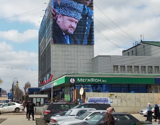 Со временем изображения Кадыровых стали восприниматься как должное. И когда кажется, что ты привык к этой пестроте, на здании Дома печати появляется гигантский портрет Ахмата Кадырова. Как напоминание, что находишься "под колпаком".