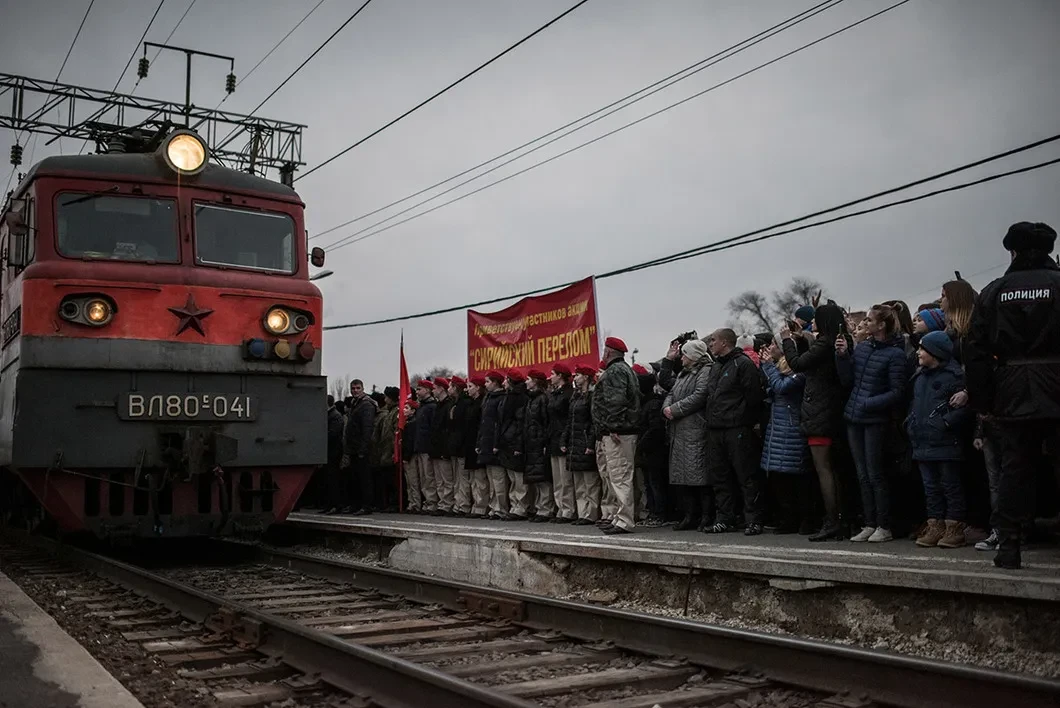 Агитпоезд Минобороны России с выставкой о Сирии с 23 февраля объезжает города и полустанки страны на своем долгом пути из Москвы во Владивосток. «Новая газета» уже описывала торжественные встречи поезда с сирийскими военными трофеями с российским народом — например, в Саратове. А сейчас смотрите галерею фотографа Алины Десятниченко из Краснодарского края, куда добрался «Сирийский перелом».