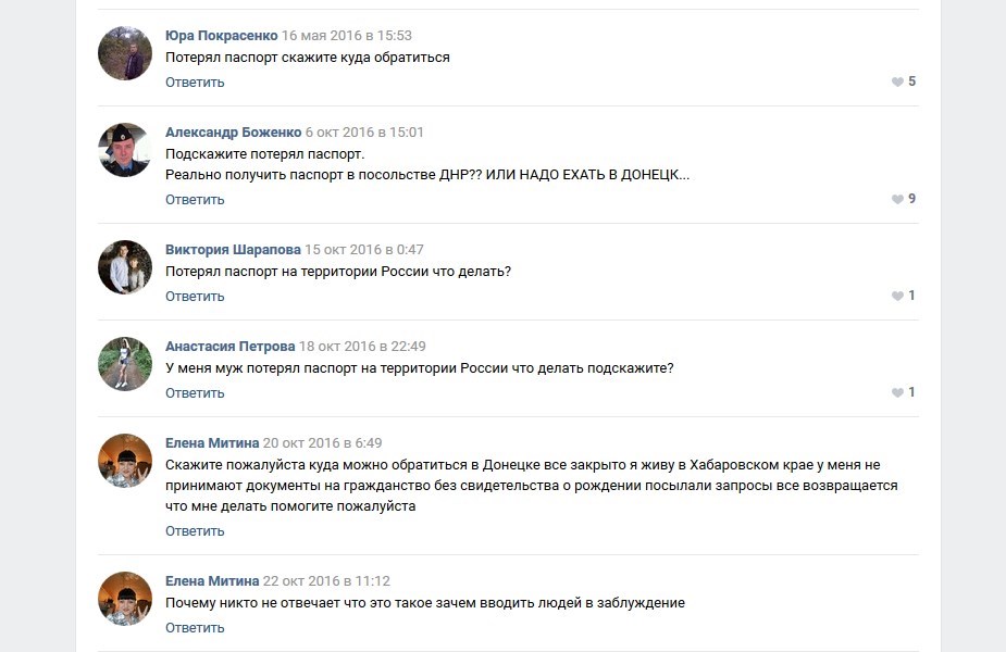 Причем, судя по всему, положение в России тех, у кого есть паспорта ДНР или ЛНР" немногим лучше, чем если паспорта нет совсем. Люди не знают, куда обращаться, просят помощи и консультируются в интернете. В юридическом смысле их положение непростое еще и потому, что специалистов по этой тематике немного. Тем не менее некоторые дельные советы можно получить на специальных ресурсах, таких как "Вестник мигранта".