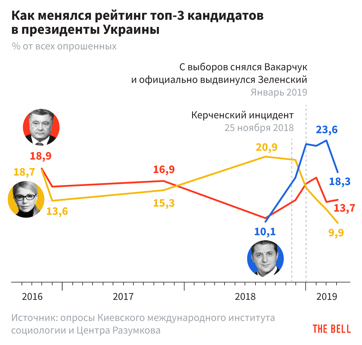 Главное событие наступающих выходных — первый тур выборов президента Украины. Результаты непредсказуемы, пока понятно только одно: лидер опросов, актер и юморист Михаил Зеленский, с очень высокой вероятностью выйдет во второй тур. Борьба за второе место идет между Петром Порошенко и Юлией Тимошенко, и пока шансы действующего президента выше. В конце 2018 года в его пользу сыграл инцидент в Керченском проливе, а в марте, как и год назад Владимиру Путину, Порошенко помогли масштабные социальные выплаты, говорит украинский политолог Владимир Фесенко. У победителя гонки за второе место будут хорошие шансы во втором туре, считает его коллега Вадим Карасев.