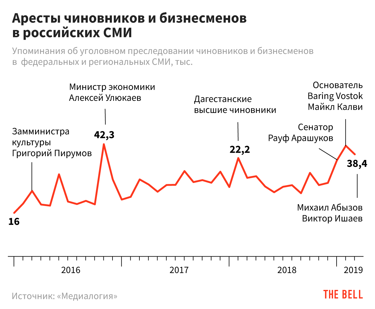 - Среди опрошенных The Bell чиновников самый распространенный ответ можно свести к следующему: «Нет, не страшно! Мне нечего стыдиться, и меня не за что брать». «Разумеется, такие новости не добавляют оптимизма», — признает федеральный чиновник. «Но если не делать ничего противозаконного, то нечего бояться», — говорит другой. «И что теперь, на работу не ходить?» — иронизирует третий. Но поверить в их спокойствие трудно — данные о публикациях в российских СМИ свидетельствуют, что волна новостей об арестах и уголовных делах на чиновников и бизнесменов медленно, но верно нарастает с каждым годом.
