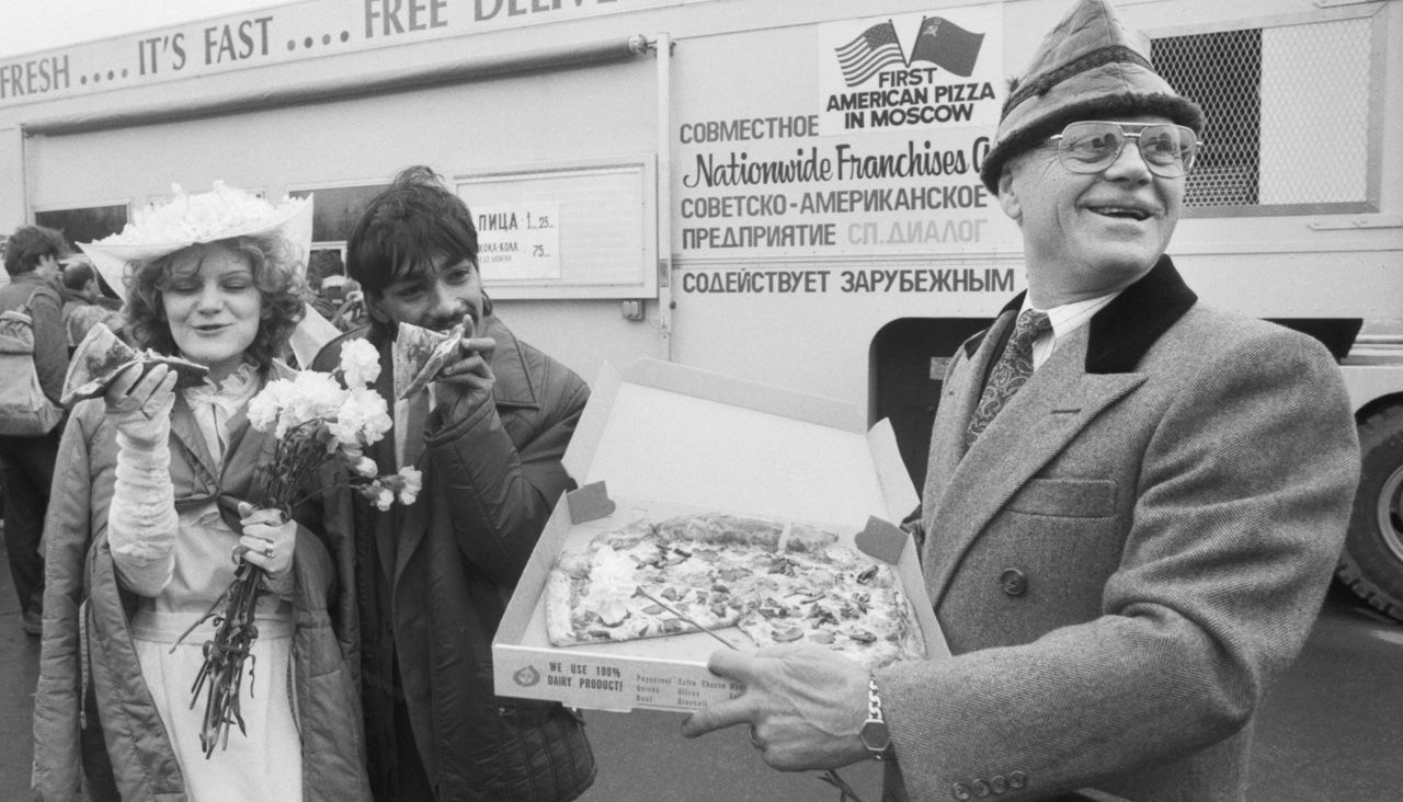 На эту же тему, только более практически, рассуждал в интервью Los Angeles Times бизнесмен из Нью-Джерси Луи Пинконе: «Они полюбят пиццу. Кто вообще не любит пиццу?» Его компания и запустила в Москве фургон-пиццерию, и Пинконе не без удовольствия рассказывал газете The New York Times после месяца работы в СССР, почему ему нравится вести дела в социалистической стране: «К пяти часам вечера у нас кончается пицца. В США конкуренция такая, что приходится тратить миллионы, чтобы просто продать свой продукт. Там — покупатели стучат в вашу дверь и просят им его продать».