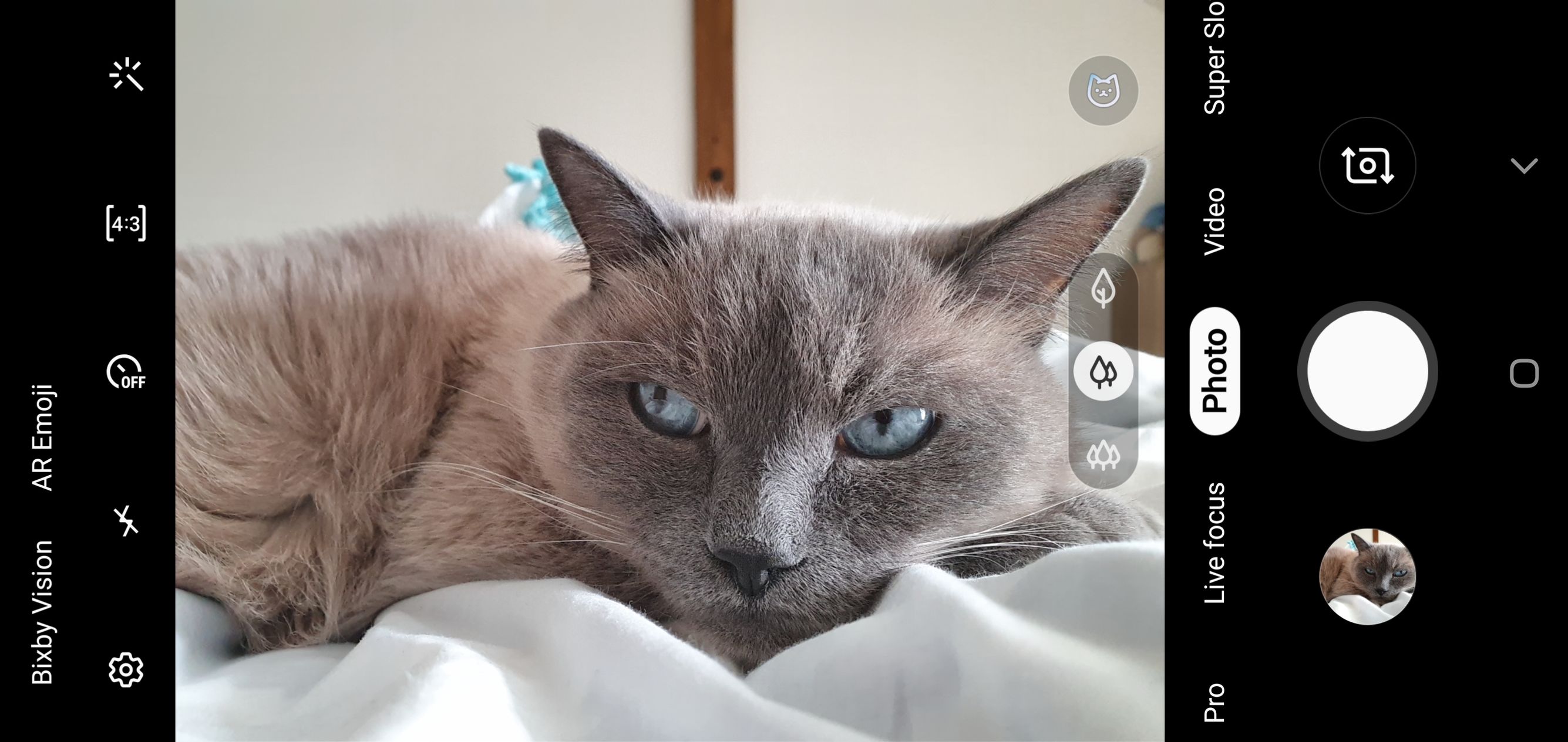 Вдобавок к этому — множество настроек, переключателей объективов, соотношения сторон кадра и специальной опции распознавания сцены: предполагается, что телефон будет выбирать параметры в зависимости от того, снимаете ли вы пейзаж, человека или закат. Есть даже режим для домашних животных (смотрите на иконку над правым ухом кота), но в чем его особенность, сказать трудно.