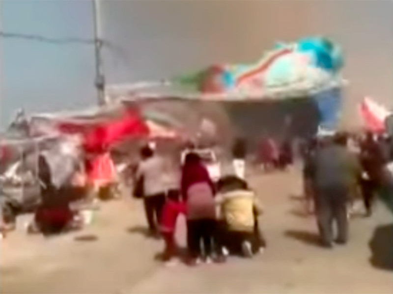 В уезде Юйчэн, который расположен в городском округе Шанцю китайской провинции Хэнань, пыльный вихрь обрушился на рынок и детские аттракционы.