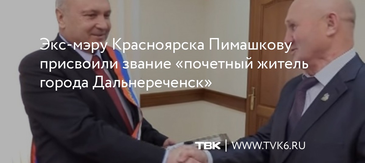 Экс-мэру Красноярска Пимашкову присвоили звание «почетный житель города Дальнереченск»