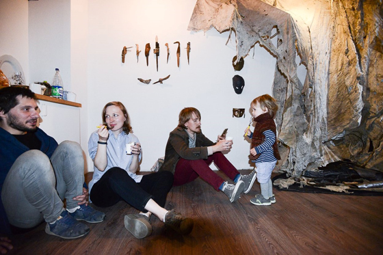 я только-только переселился в эту квартиру, поэтому сказал ребятам — обустраивайте здесь всё как хотите, а сам пошел в магазин за продуктами, чтобы приготовить ужин. когда вернулся, понял, что квартира полностью превратилась в выставочное пространство. я подумал, а почему бы и нет. выставку посетило около 60 человек.