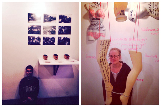 — я вообще воспринимала «интимное место» как галерею. это разве квартира? вот квартира была у нас в минске (bookmuseo — см. выше. — л.ц.). там трусы, носки навешаны на экран с видеоинсталляцией или живописью. мы делали выставку, ели, спали, всё там же. помню, даже очень сильно ругалась там со своим парнем и кинула в него чью-то инсталляцию. очень удобно, и у объектов новые смыслы.