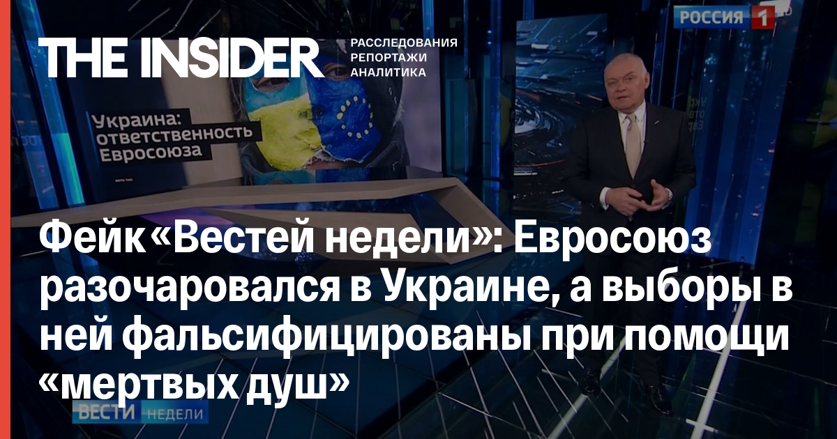Фейк «Вестей недели»: Евросоюз разочаровался в Украине, а выборы в ней фальсифицированы при помощи «мертвых душ»