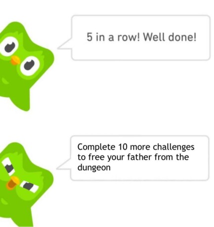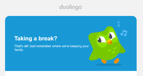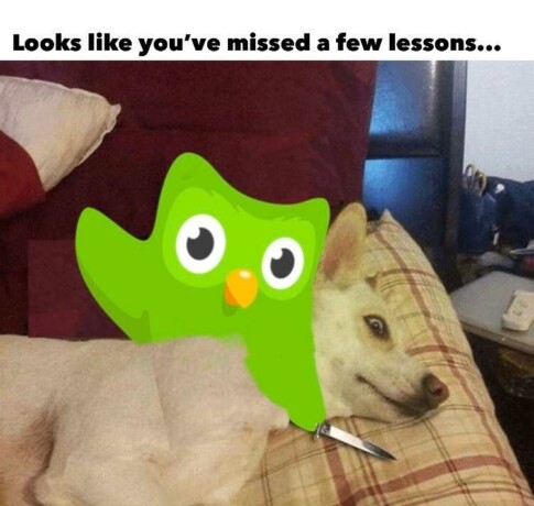 Duolingo — это созданная в 2012 году платформа для изучения иностранных языков. Пользователи могут проходить уроки на сайте или в приложении, а если забывают о занятиях, то получают пуш-уведомления с маскотом компании — зелёной совой Дуо, которая настойчиво предлагает вернуться к пропущенным урокам.