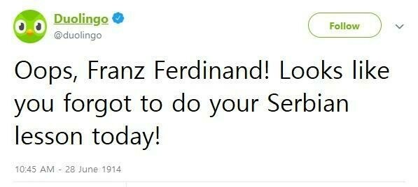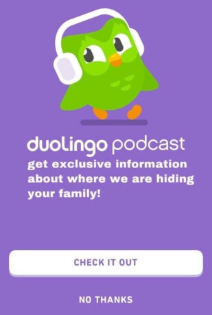 1 апреля оказалось, что публикация был тизером к первоапрельской шутке — Duolingo представили огромного маскота, который в реальности ходит за пользователями и напоминает им о пропущенных уроках. Компания предложила клиентам три плана — «поощряющую», «разочарованную» и «пассивно-агрессивную» Дуо.