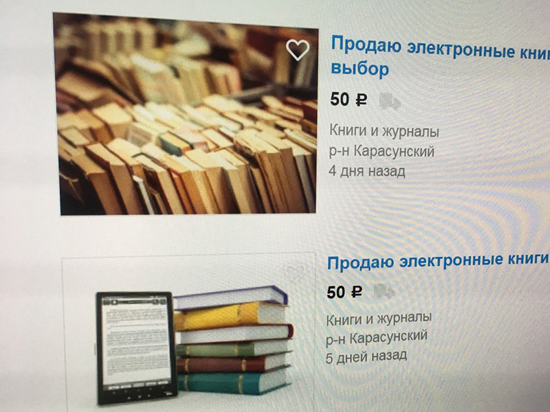 Стоимость одной электронной копии книги на Avito колеблется от 30 до 150 рублей. Это в несколько раз меньше стоимости электронных книг у легальных интернет-сервисов. В объявлениях о продаже не размещают ссылки на книги: для покупки нужно связаться с продавцом и перевести деньги на карту или на телефон. После этого копия книги высылается на электронную почту. Продавцы, с которыми пообщался корреспондент издания, уверены, что продают легальный товар.