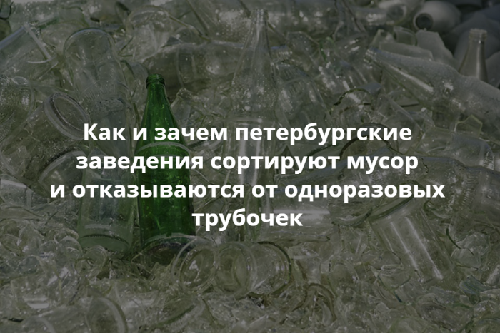 В Петербурге всё больше заведений, которые снижают число отходов, сортируют мусор, отказываются от одноразовой посуды. Часть кафе и баров участвует в Zero Waste Program, партнером которой выступает «Бумага», кто-то вывозит стекло вместе бартендером El Copitas Женей Зарукиной, кто-то поддерживает проект My cup, please! и делает скидку на напиток, налитый в чашку гостя.