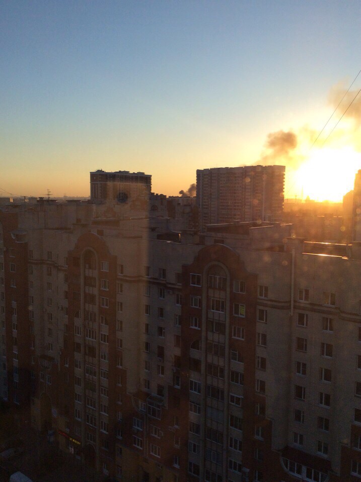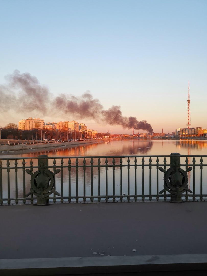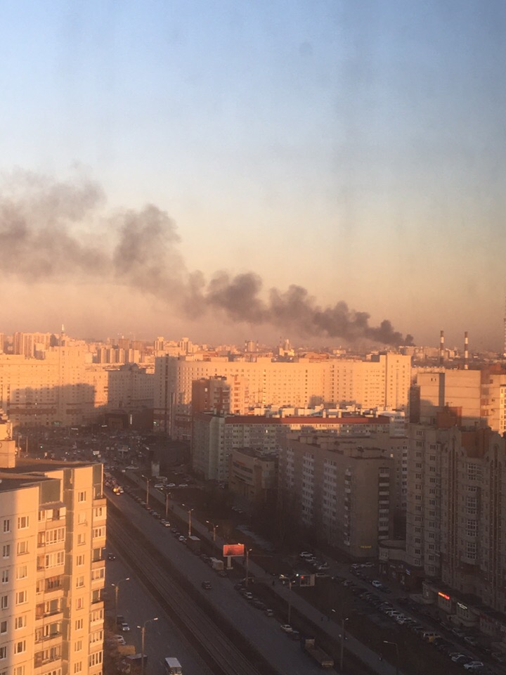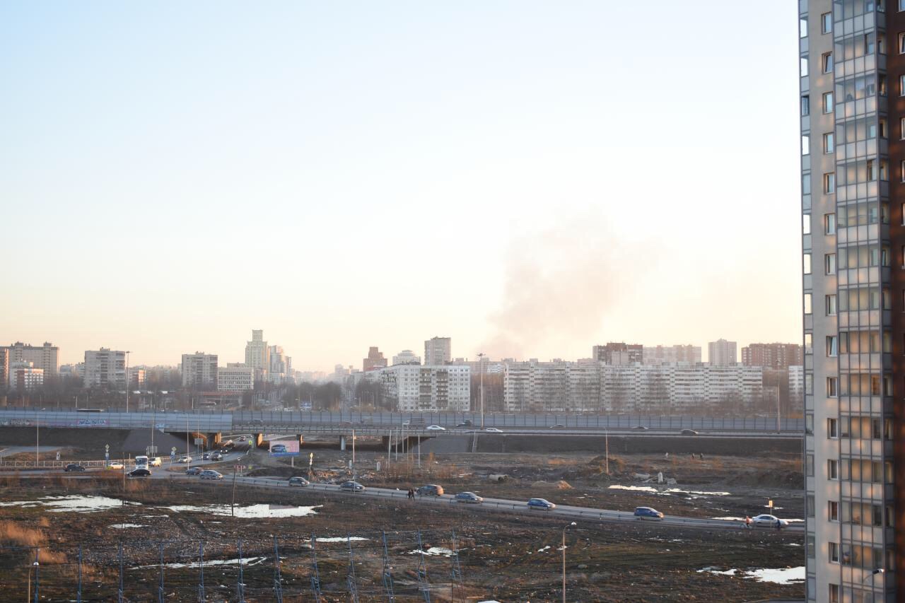 Дым от пожара был отчетливо виден в центре и на севере Петербурга. «Бумага» собрала фотографии горожан.