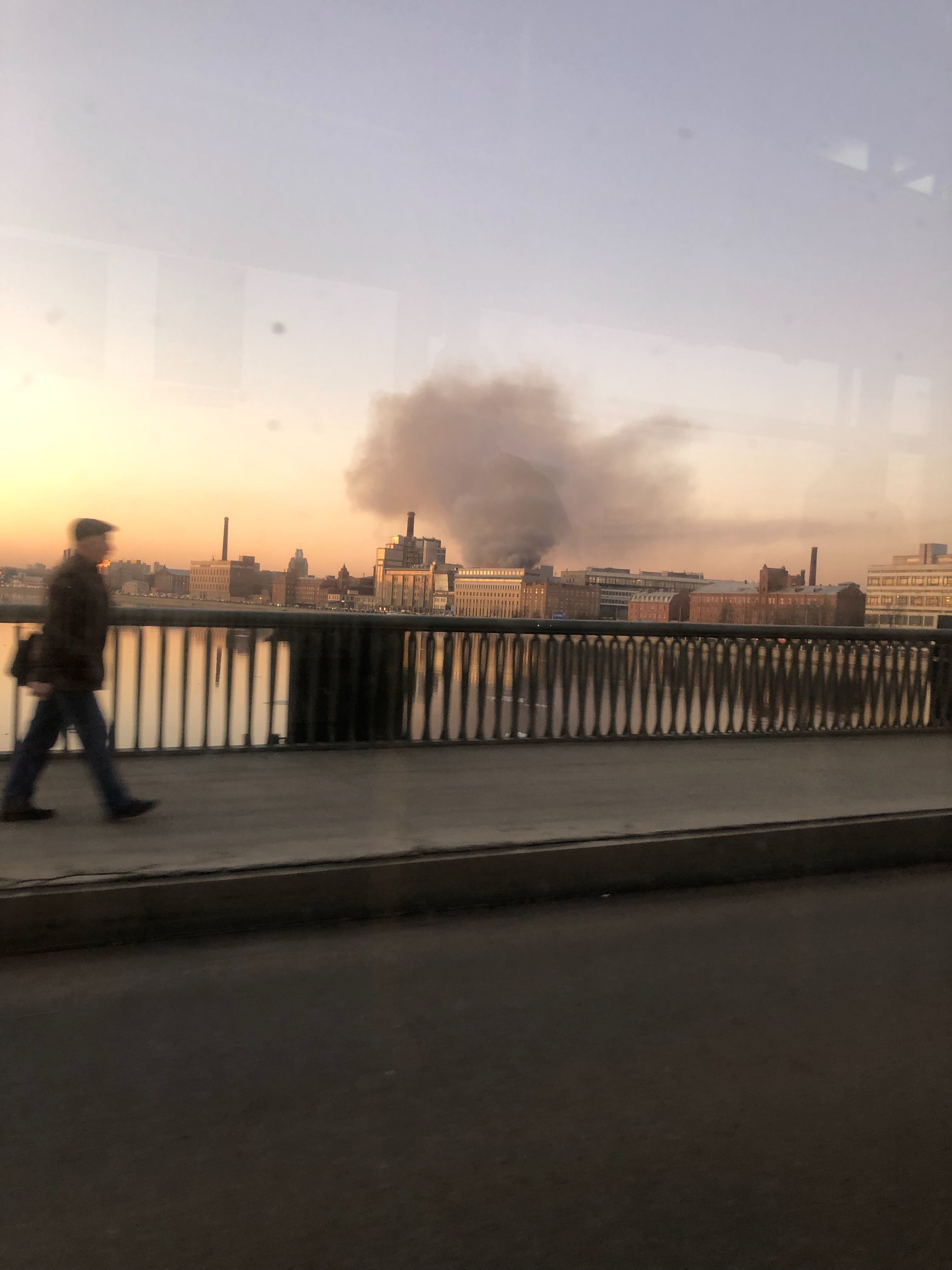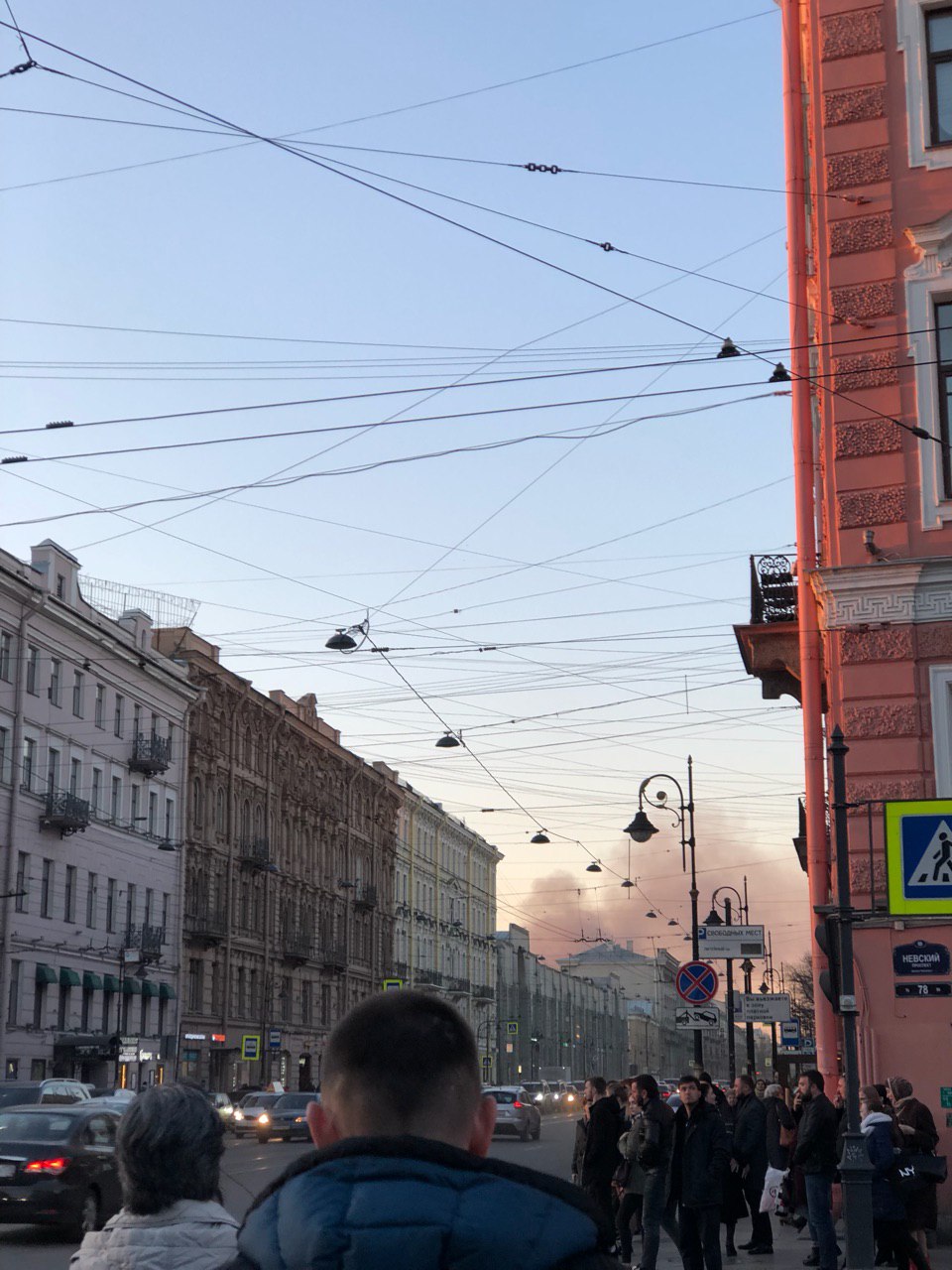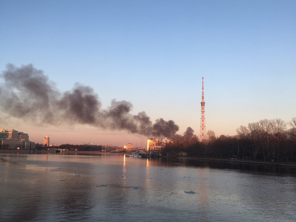 Дым от пожара был отчетливо виден в центре и на севере Петербурга. «Бумага» собрала фотографии горожан.