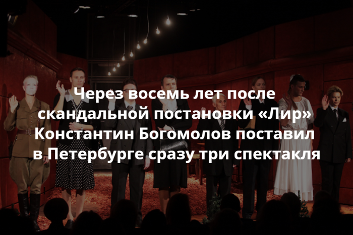 В Петербурге до этого Богомолов работал лишь однажды — в 2011 году он выпустил в «Приюте комедианта» спектакль «Лир. Комедия» по Шекспиру. Скандал, который разразился после премьеры, был уникальным для петербургского театрального сообщества, одна часть которого режиссера возненавидела, а вторая начала прогнозировать его великое будущее.