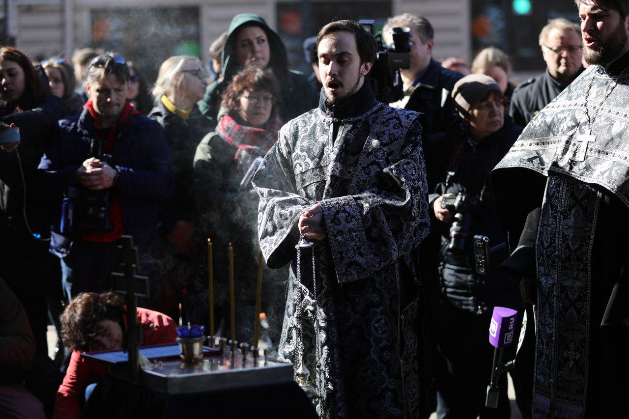 В Петербурге вспоминают жертв теракта в метро. Три фотографии возложения цветов и панихиды у «Технологического института»