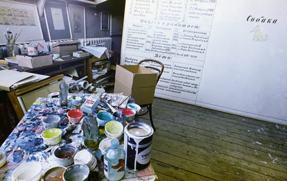— Виделось это все как нечто волшебное, начиная со знаменитой лестницы, которая тянулась из двора до чердака; по ней ты совершал магическое восхождение сквозь толпы коммунальных мусорных ведер, сквозь разные запахи, доносящиеся из квартир, поскольку это была лестница черного хода и туда выходили задние двери огромных коммуналок. Это было идеальной прелюдией к мастерской Кабакова. Поднявшись по этой всегда довольно замусоренной лестнице, которая с течением лет стала восприниматься как инсталляция Кабакова, можно было попасть на роскошный чердак, причем, прежде чем войти в саму мастерскую, ты оказывался в абсолютно дикой его части, где света часто вообще не было или горела очень тусклая лампочка и надо было пройти по дощатому настилу среди тьмы сквозь загадочный мир теней и запахов.
