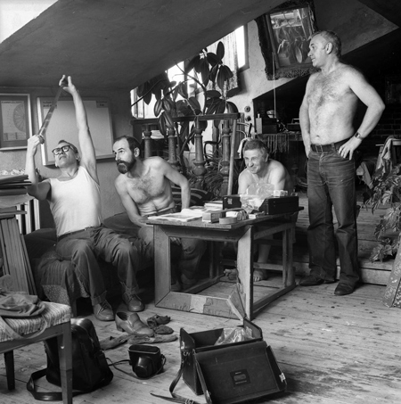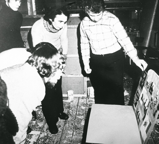 © Олег Васильев, Эрик Булатов, Илья Кабаков и Эдуард Гороховский в мастерской И. Кабакова. Москва, 1981. Фотография Игоря Макаревича / Архив современного искусства «Гараж». Фонд Игоря Макаревича Мастерская Кабакова на Сретенском бульваре, 1981 — А что, собственно, там происходило?