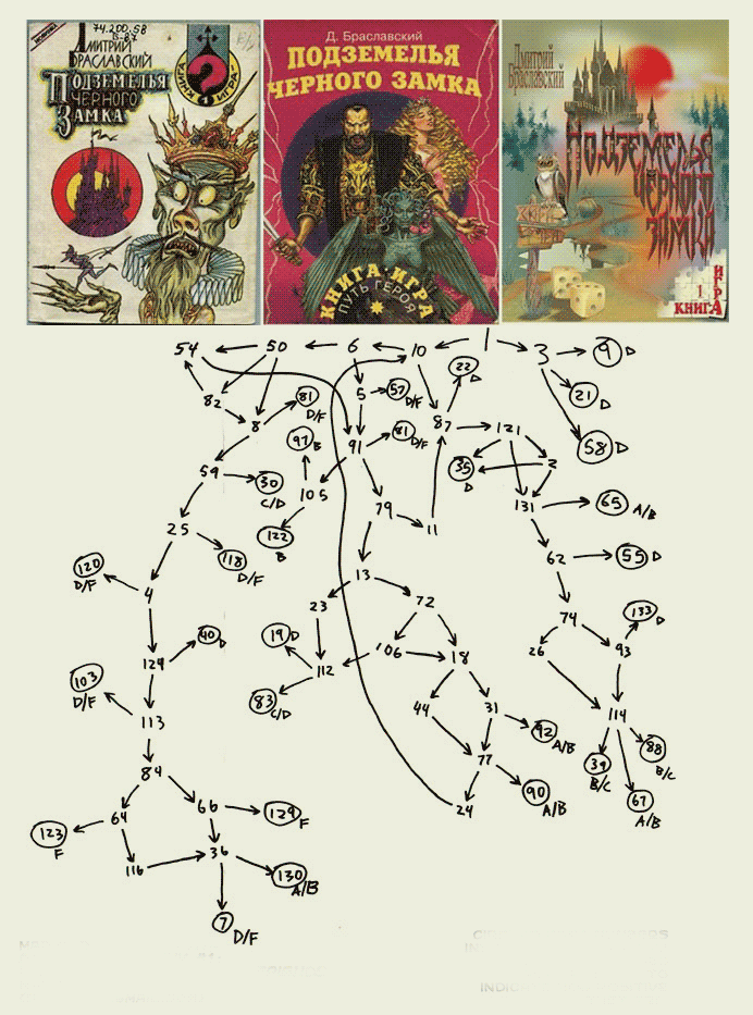 Первая ролевая книга-игра на русском языке — «Подземелья черного замка» — была написана Дмитрием Браславским в 1991 году. Она обладала достаточно традиционным сказочным сюжетом с элементами славянского фэнтези: игрок должен был пройти через населенный монстрами и полезными NPC лес, собирая по пути волшебные артефакты, чтобы спасти похищенную злым чародеем Барладом Дэртом и заточенную в замке принцессу. Ролевая система была скопирована Браславским с англоязычного оригинала, за исключением добавления в нее такого параметра, как обаяние, которое позволяло герою обходиться в некоторых ситуациях без драк. Тираж первого издания «Подземелий черного замка» достигал немыслимой по нынешним временам цифры в 100 000 экземпляров.