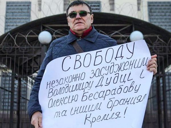Петр Дудка, брат одного из политзеков, в день оглашения приговора провел у посольства России в Киеве пикет с требованием освободить обоих фигурантов дела, а также всех остальных украинских узников Кремля.