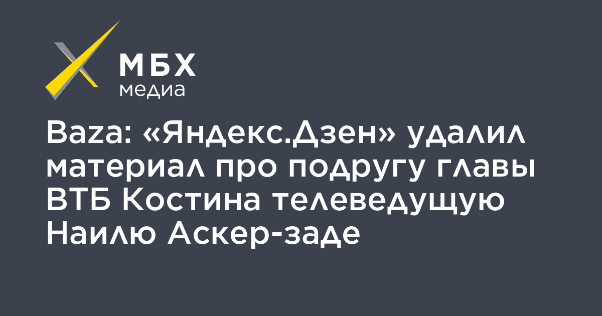 Baza: «Яндекс.Дзен» удалил материал про подругу главы ВТБ Костина телеведущую Наилю Аскер-заде