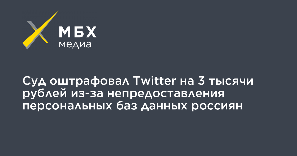 Таганский районный суд Москвы оштрафовал Twitter на три тысячи рублей за отказ компании предоставить персональные базы данных россиян, сообщает «Медиазона».