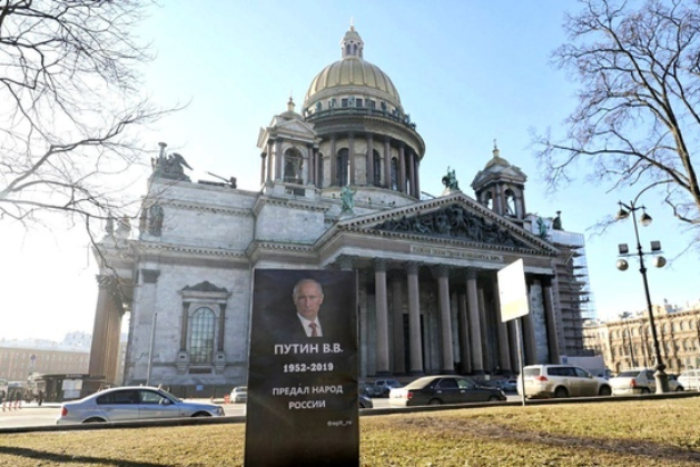 Андрея Жексимбаева и пресс-секретаря движения «Агит Россия» Григория Кудрявцева задержали 4 апреля. «Надгробие» появилось в центре Петербурга 3 апреля. По словам активистов, они установили табличку из-за принятия «антинародных законов и отвратительного правления» президента.
