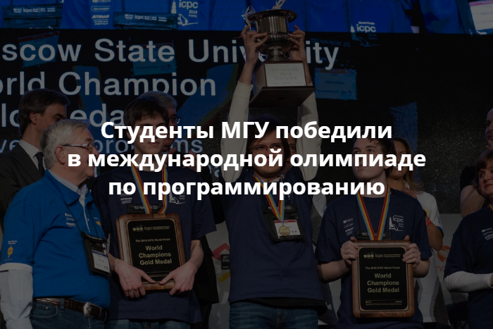 Команда студентов из МГУ имени Ломоносова победила в Международной олимпиаде по программированию ICPC. Об этом сообщает «ТАСС» со ссылкой на пресс-службу вуза.