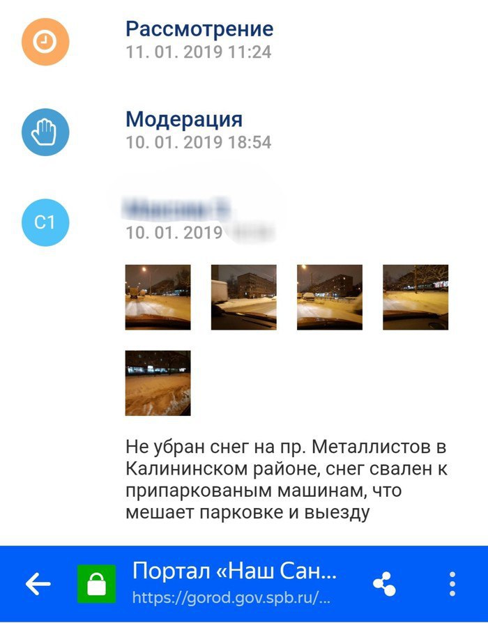 Житель Петербурга в начале января оставил жалобу на портале «Наш Санкт-Петербург», в которой рассказал о сугробах. Чиновники отчитались об уборке снега в апреле. Фотографию обращения и ответ опубликовал телеграм-канал «Протестный Петербург».