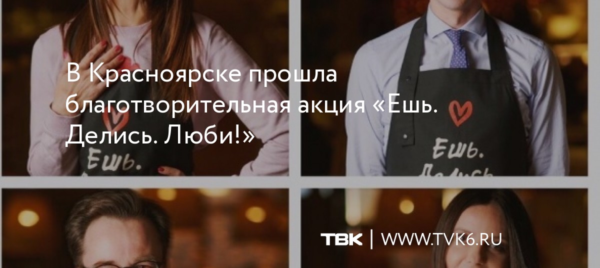 5 апреля в Красноярске прошло ежегодное благотворительное мероприятие «Ешь. Делись. Люби!». Раз в год известные медийные лица города снимают костюмы, надевают фартуки и становятся официантами. Все для того, чтобы помочь больным детям, которым нужны инсулиновые помпы.