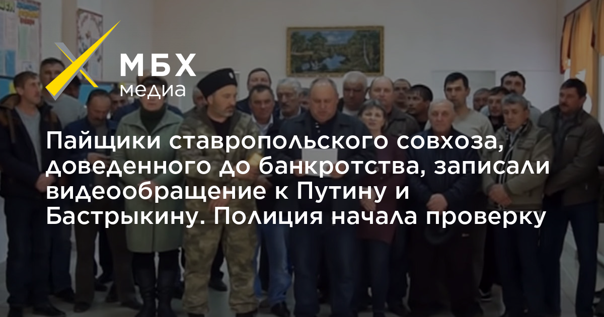 После публикации видеообращения пайщиков совхоза «Восточный» Ставропольского края к президенту Путину и председателю СК Бастрыкину следственные органы начали проверку его работы. Как утверждают сотрудники, председатель совхоза довел производство до банкротства и долга в 388 миллионов рублей. Без ведома пайщиков он привлекал инвесторов, которые теперь требуют отдать им совхоз, и скрывал от них то, что три года не платил арендную плату за землю.