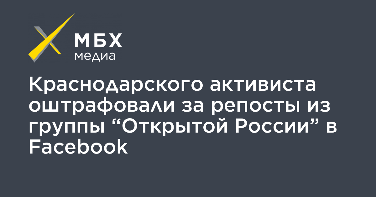 Краснодарского активиста оштрафовали за репосты из группы «Открытой России» в Facebook