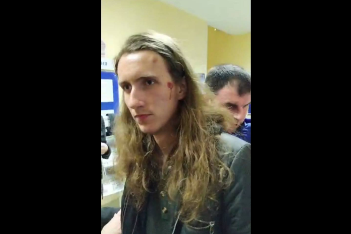 Илья Ткаченко сообщил, что в отделе полиции его били по голове и ребрам. Правозащитники опубликовали фото, на котором видна кровь у него на лице. Ткаченко вызывали скорую.