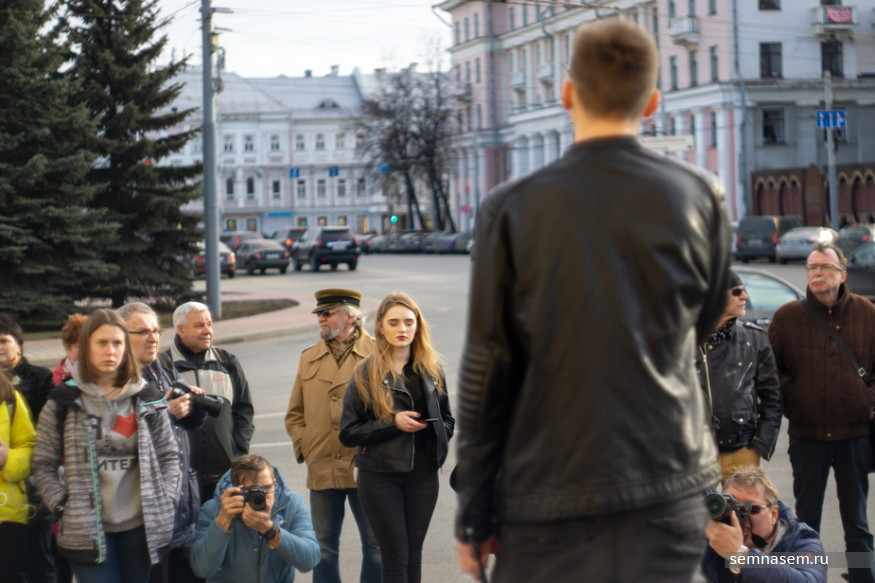 Несколько молодых людей прочитали стихи с постамента. На акцию пришли ярославские политики, в частности депутат областной думы Антон Капралов.