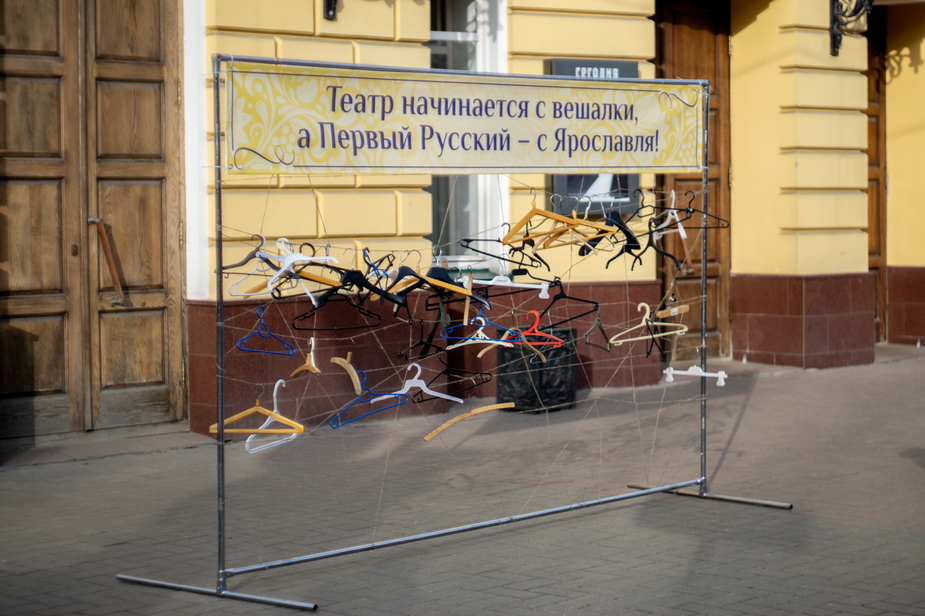 Акция проходила под лозунгом: «Театр начинается с вешалки, а Первый русский — с Ярославля» (театр драмы имени Фёдора Волкова считается первым русским народным театром). Организаторы поставили две конструкции. На них можно было символично повесить плечики и таким образом проголосовать за сохранение самостоятельности театров. Флешмоб отрепетировали заранее: муниципальные чиновники, которые курируют молодежную политику, раздали участникам специально заготовленные плечики.