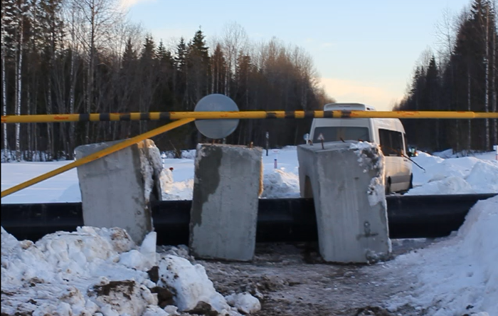 Постепенно пора собираться домой. Участники блог-тура уезжают группами на машинах активистов. На пути в Урдому обнаруживается, что дорога, по которой мы ехали с утра, перегорожена громадной металлической трубой, приваренной к шлагбауму, и завалена бетонными «волнорезами». Единственный оставшийся путь в Урдому — через газпромовский КПП (дорога, по которой ездят урдомские активисты на Шиес, принадлежит «Газпрому»). Ранее «Газпром» сохранял как бы нейтралитет по отношению к горящему шиесскому конфликту, но вот сейчас он явно дал понять, на чьей он стороне, перегородив активистам единственный свободный путь.