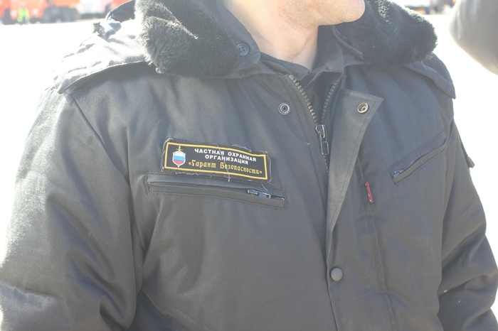 По случаю таких работ станция огорожена предупредительной лентой и линейкой охранников — людей в черном, без бэйджиков, но с нашивками «Частное охранное предприятие „Гарант безопасности“». К сожалению, текст нашивки не вселяет в пришедших людей уверенности в своей безопасности, потому что при попытке попасть на территорию пассажирской и по идее общедоступной станции, они сталкиваются со стеной чоповцев, которые хоть и не применяют физическую силу в отношении активистов, но в довольно агрессивной форме дают им понять, что им тут не рады и на станцию они не попадут. Это странно, потому что совсем рядом располагается (временный, как я полагаю) пункт полиции, и мы пытаемся спросить у проходящих мимо полицейских — почему нас не пускают в общественное место? Молчание и равнодушие было нам ответом.