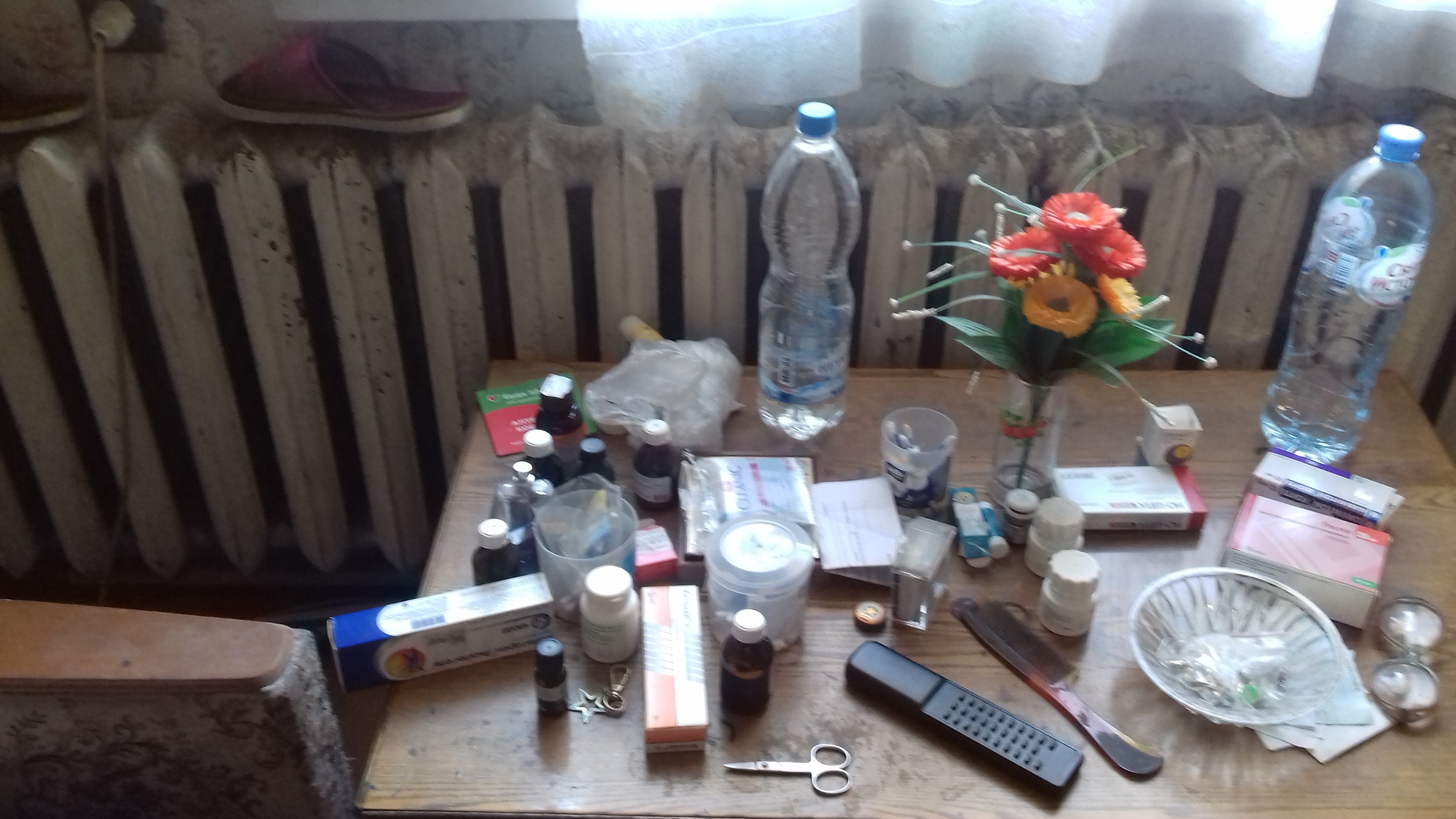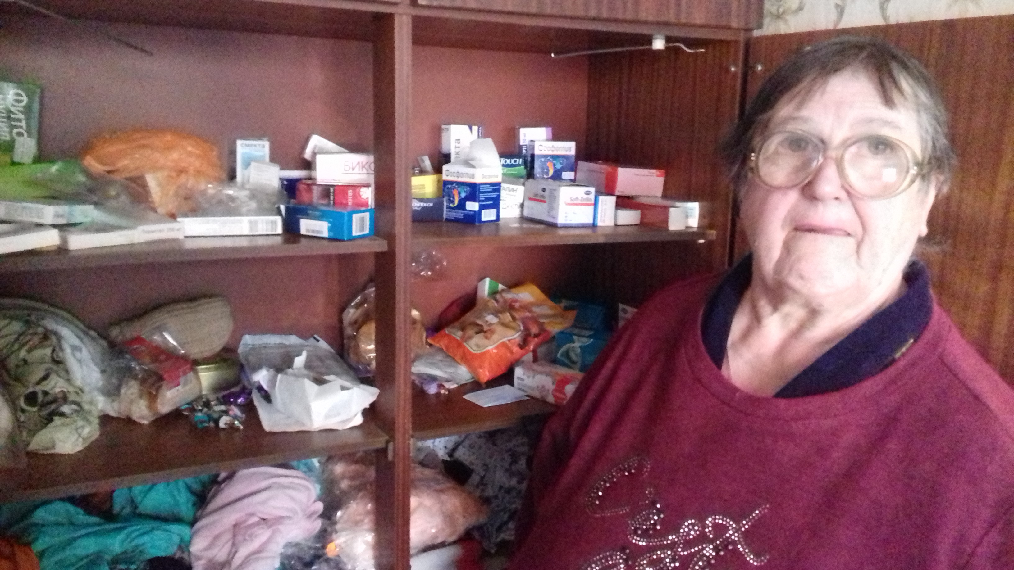 По ее словам, большая часть пенсий сейчас уходит на лекарства. Полки шкафов в комнате, стол заполнены коробками с медикаментами. Николай Николаевич с трудом ходит из-за травмы ноги. Людмила Ивановна – инвалид третьей группы, больна сахарным диабетом.
