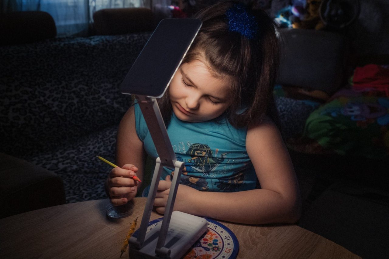 «Настюша-то огонь у нас!» — Алена поправляет дочке хвостик, та на секунду прижимается к ее руке щекой, но снова отвлекается. Под партой у девочки самодельный паук, поделка из фольги, она показывает его мне, радостно смеется, когда я в страхе отстраняюсь от восьми дрожащих серебряных лапок.