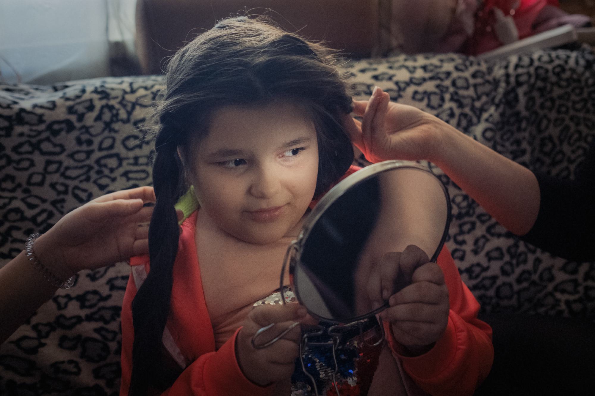 Мама помогает Насте одетьсяФото: Оксана Юшко для ТД Мы на уроке в калининградской школе — очень далеко от места, где Настя родилась. Алена рассказывает, что жизнь в Казахстане становилась все тяжелее — она мягко обходит конкретику, но говорит, что каждый день коллеги мужа, соседи, да даже случайные люди давали понять: вы здесь не свои. «Мы уехали из Казахстана по программе возвращения соотечественников, — рассказывает Алена.— За три дня погрузили жизнь в машину, и все — в другую жизнь». Калининград выбрали, потому что удалось найти работу мужу, потому что прочитали про школу с доступной средой и внимательным к людям с особенностями директором, ну, и потому что море.