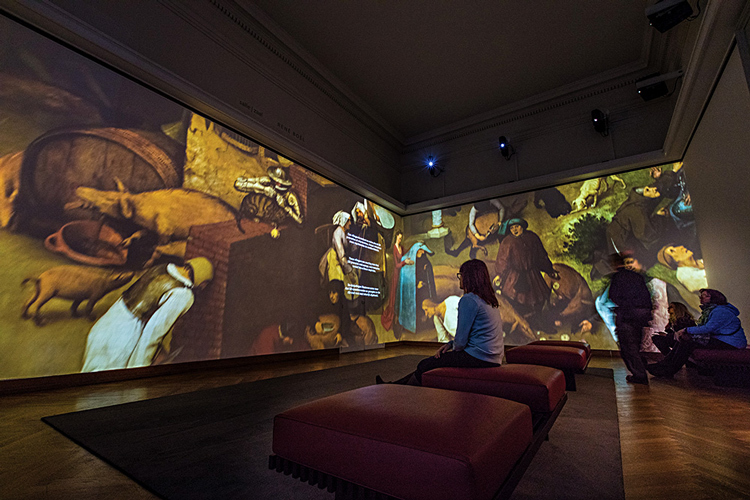 © Королевские музеи изящных искусств, Брюссель Оцифровка картин для выставки «Невиданные шедевры» Идея не нова: первые мультимедийные экспозиции показывали на французской выставочной площадке Carrières de Lumières еще в 2012 году. На каменные стены грота проецировали полотна Поля Гогена и Винсента Ван Гога. Спустя два года австралийская компания Grande Exhibition разработала систему «оживления картин» SENSORY4 и представила миру передвижную мультимедийную выставку «Van Gogh Alive». Организации объединились, чтобы таким же образом показать работы импрессионистов, а затем и Леонардо да Винчи. Отечественные выставочные залы Artplay и «Люмьер-холл» подхватили тенденцию и уже успели продемонстрировать движущиеся полотна Иеронима Босха, Микеланджело Буонарроти, Ивана Айвазовского и Николая Рериха. Через очки виртуальной реальности зрители впервые смотрели на картины в 2017 году, когда аукционный дом Sotheby's организовал перед торгами VR-выставку работ Сальвадора Дали и Рене Магритта. Позже их успех повторила компания BDH, которая с помощью очков Google Cardboard помещала зрителей внутрь картины Иеронима Босха «Сад земных наслаждений». Оба этих технологичных подхода к показу экспозиций Королевские музеи совместили с традиционным.