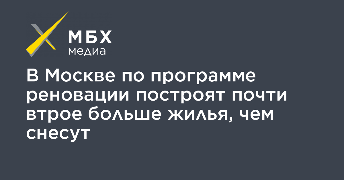 В Москве по программе реновации построят почти втрое больше жилья, чем снесут