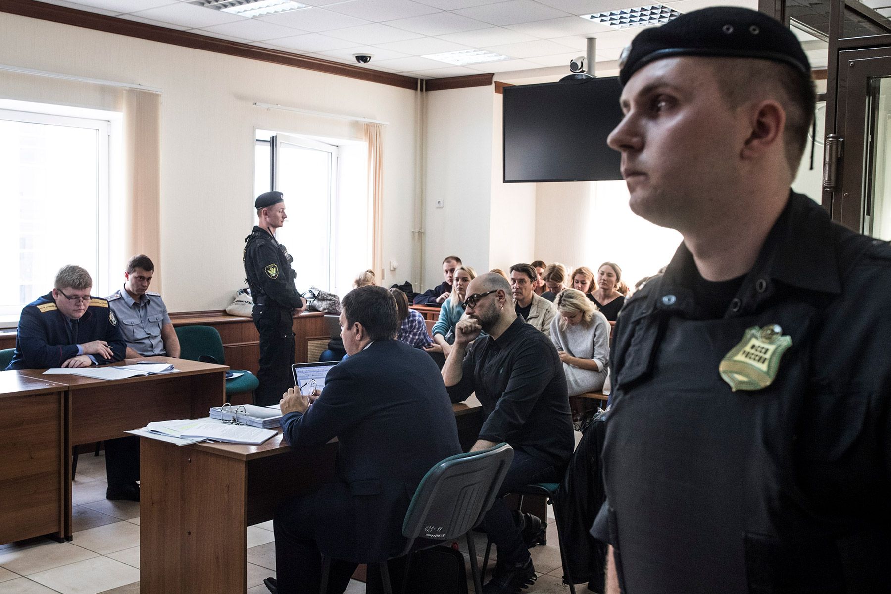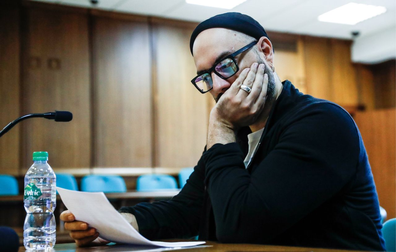 Кирилл Серебренников в суде. На заседания в ноябре 2018 года режиссер приходил в футболках с цитатами из своих спектаклей.Сергей Фадейчев / ТАСС / Scanpix / LETA Обвиняемые по делу «Седьмой студии» Софья Апфельбаум, Алексей Малобродский и Кирилл Серебренников на заседании суда. Москва, 7 ноября 2018 годаАртем Геодакян / ТАСС / Vida Press MOSCOW, RUSSIA — AUGUST 16, 2018: Film director Kirill Serebrennikov attends a hearing at the Moscow City Court to consider extending his house arrest on charges of embezzling state funds.
