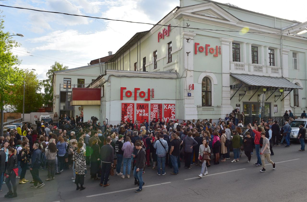 Meduza Чулпан Хаматова на митинге в поддержку Кирилла Серебренникова в день его ареста. 23 мая 2017 годаПетр Кассин / Коммерсантъ «Гоголь-центр» в день первого допроса Серебренникова. 23 мая 2017 года