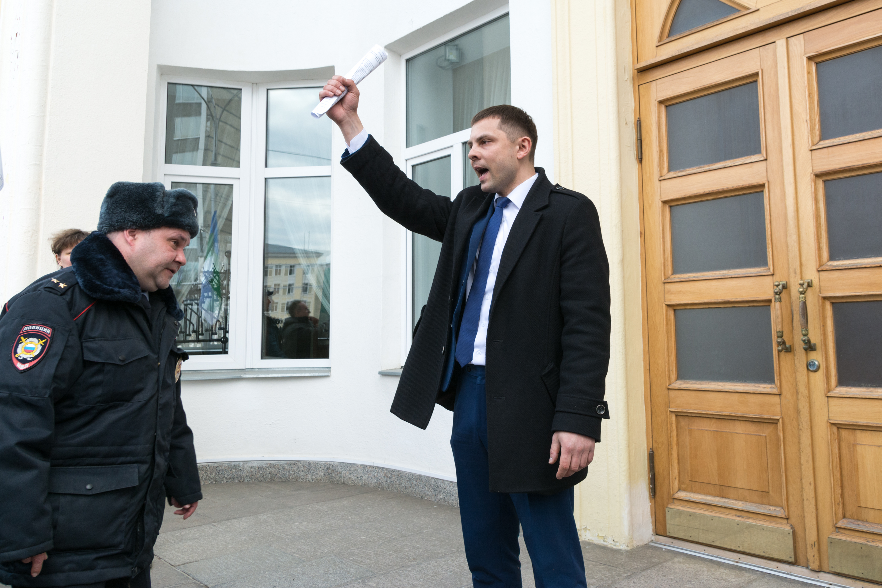 До самой площади добралось около 500 человек. Возле здания администрации правительства республики они начали скандировать "Позор!" и "Гапликова в отставку!". Администрация в выходной оказалась закрыта, и Михайлов просто сунул резолюцию в ручку двери.