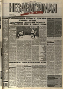 – Для буржуазного истеблишмента. А “Независимая” была артефактом, со своими текстами на разворот, с передовицами Третьякова, с невероятными интервью, которые могли быть на два разворота. При этом это была ежедневная газета. Когда я пришёл с моим товарищем Сергеем Ташевским просто с улицы, Давыдов нам сказал: напишите что-нибудь. Серёга не написал, а я написал. Я написал текст о разных типах революции. На мой взгляд, это был абсолютный бред, но это внезапно напечатали. Я помню, как мне безумно это нравилось, я гордился, что в “Независимой” — моё имя. И все тоже офигели. А потом я напечатал ещё текст «Русский лес под Реймсом» про Мурмелон, потом про Ульрику Майнхоф.